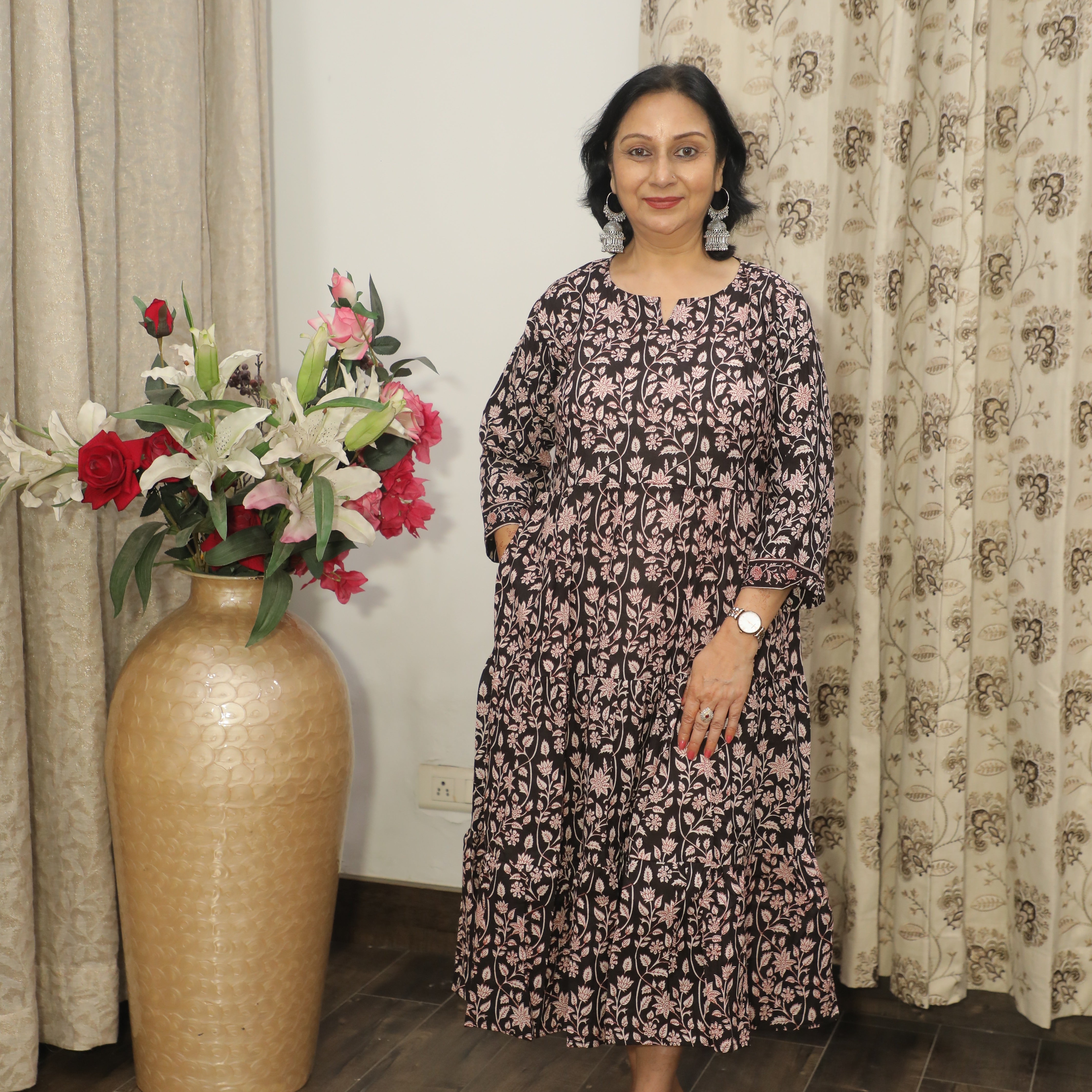 Hand Block Printed Cotton Free Size Dress