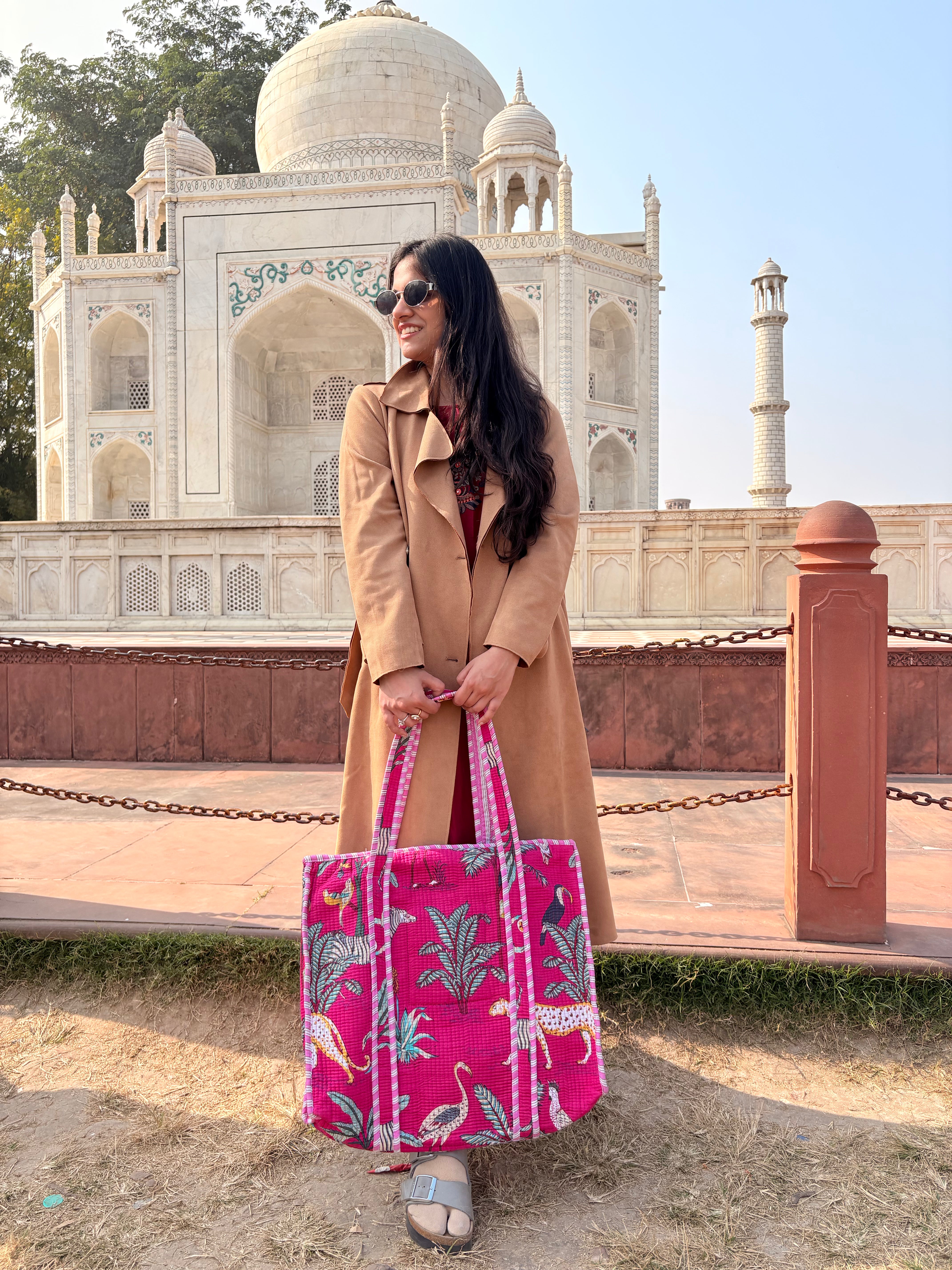 Pink Jungle Glow Tote Bag with Zip