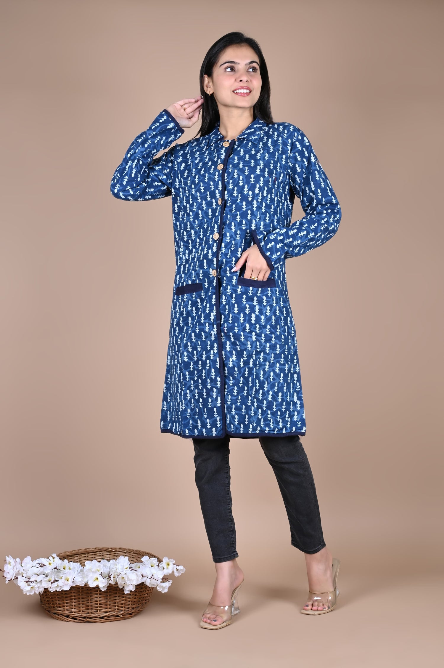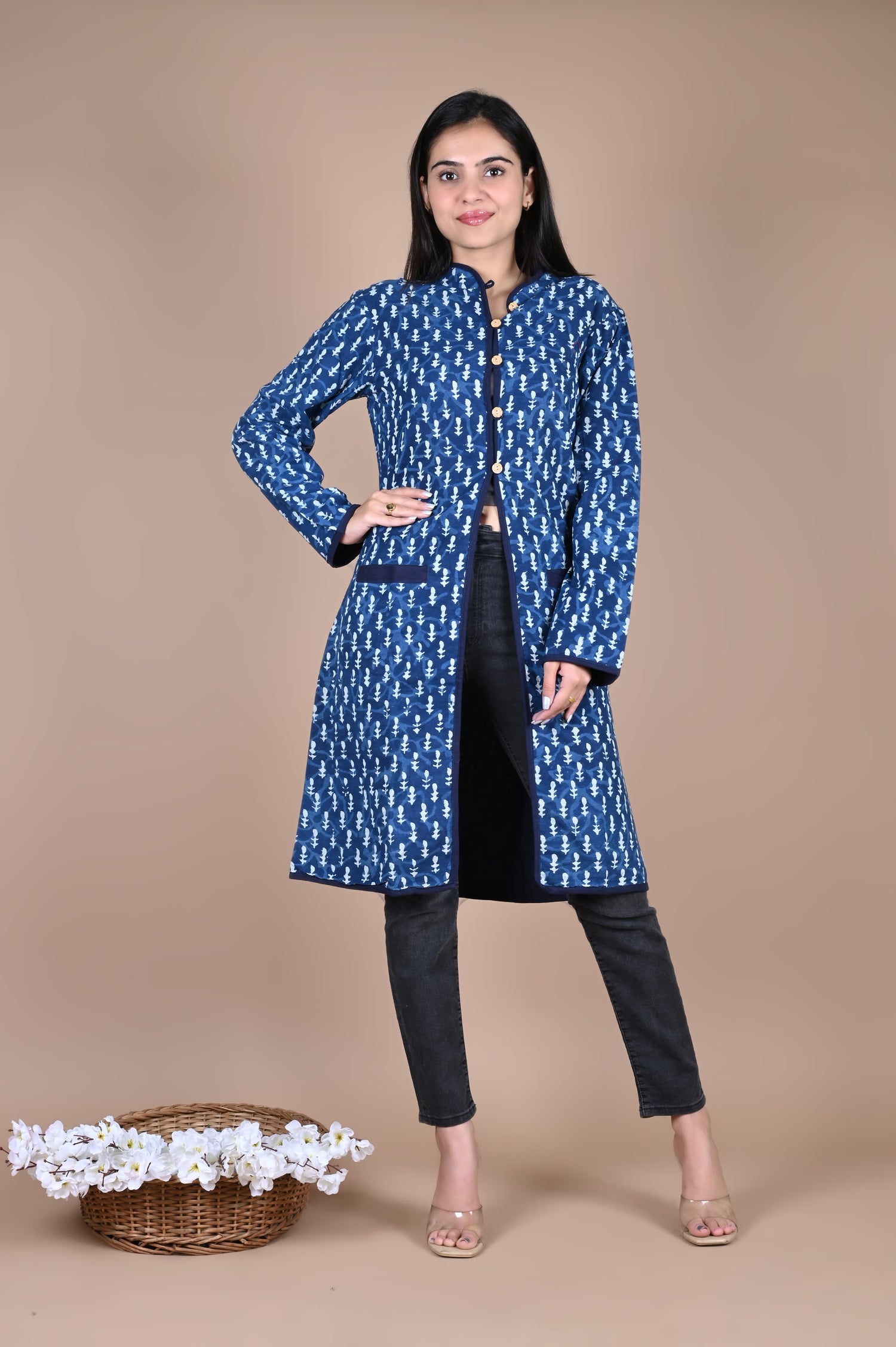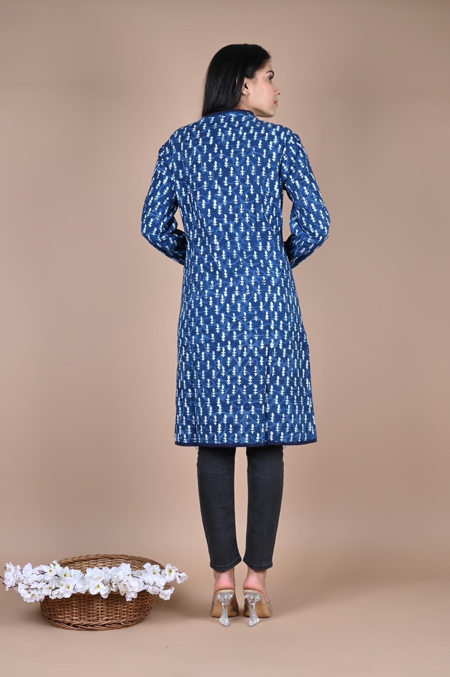 Wrap yourself in the timeless charm of Bagru craftsmanship. This beautifully handcrafted winter jacket is made from pure cotton and features authentic hand block prints from Rajasthan — a celebration of tradition, artistry, and warmth.