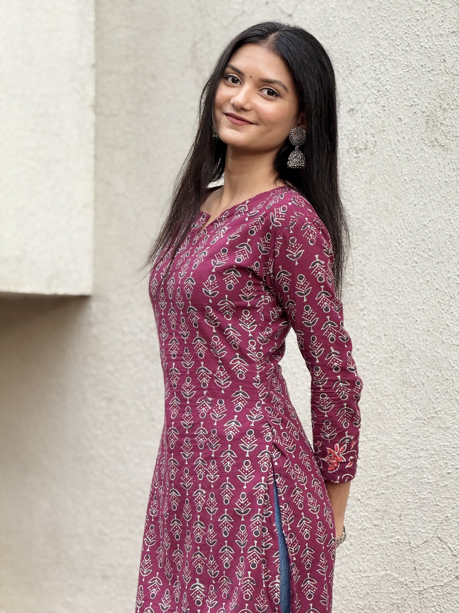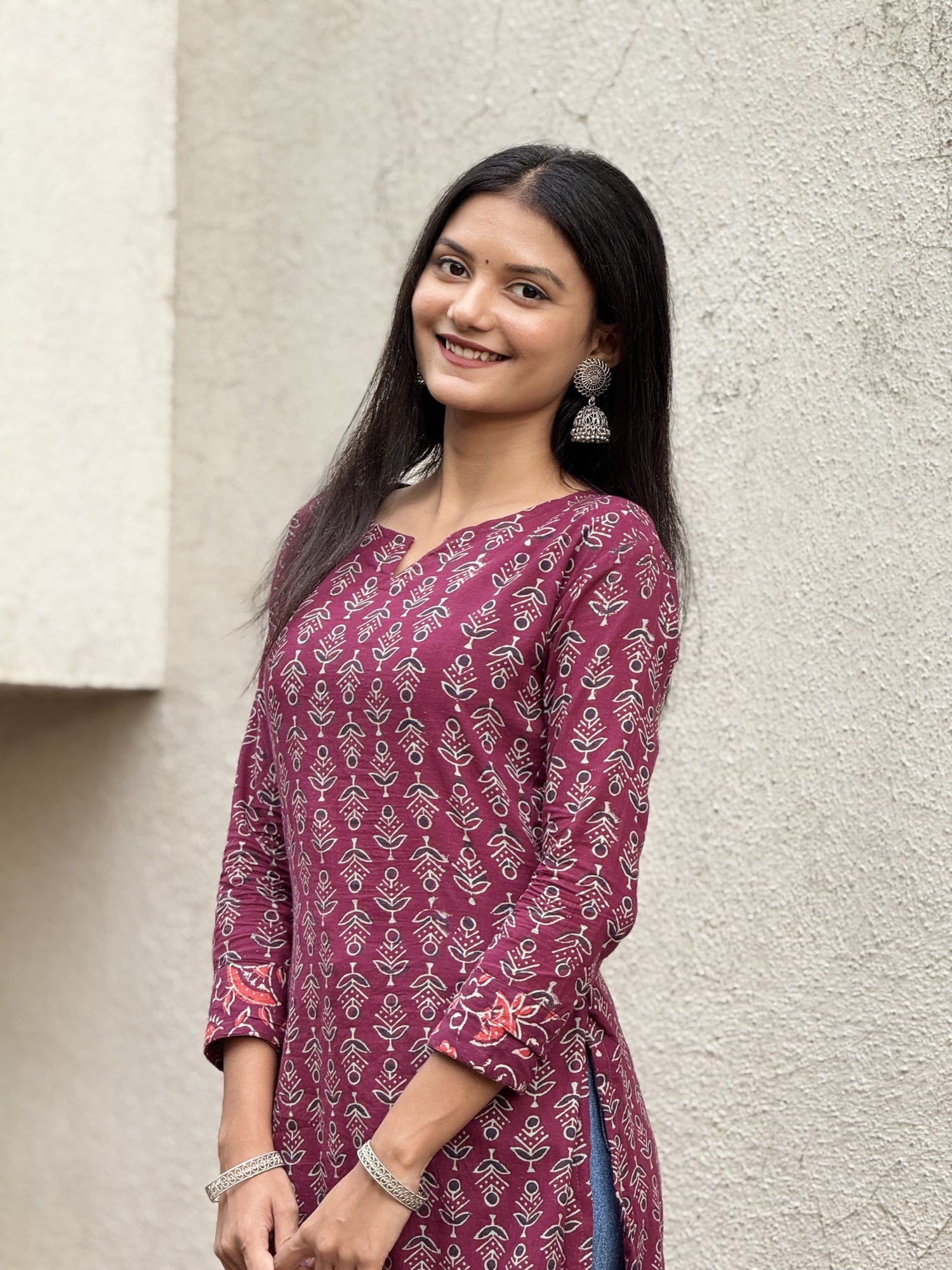 The fabric is pure cotton, super soft, and perfect for all-day wear. The maroon color is even prettier in person. I paired it with jeans for a lunch outing and got so many compliments! Definitely coming back for more from Allure.❤️