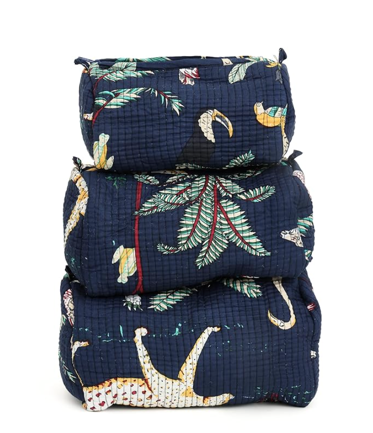 This set of three quilted cotton pouches is thoughtfully handcrafted to combine functionality with everyday elegance. Designed in three practical sizes, these pouches are perfect for organizing travel essentials or storing makeup, stationery, jewellery, and daily accessories.