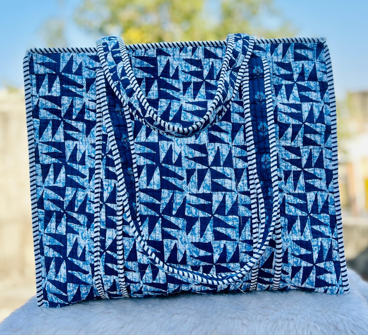 Finished with sturdy, comfortable handles, it’s perfect for workdays, casual outings, shopping runs, or short getaways. Crafted using traditional handblock printing, each tote carries a touch of artisanal beauty, making it as unique as your style.