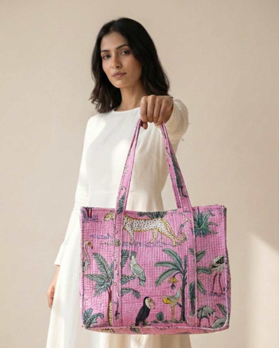 Finished with sturdy, comfortable handles, it’s perfect for workdays, casual outings, shopping runs, or short getaways. Crafted using traditional handblock printing, each tote carries a touch of artisanal beauty, making it as unique as your style.