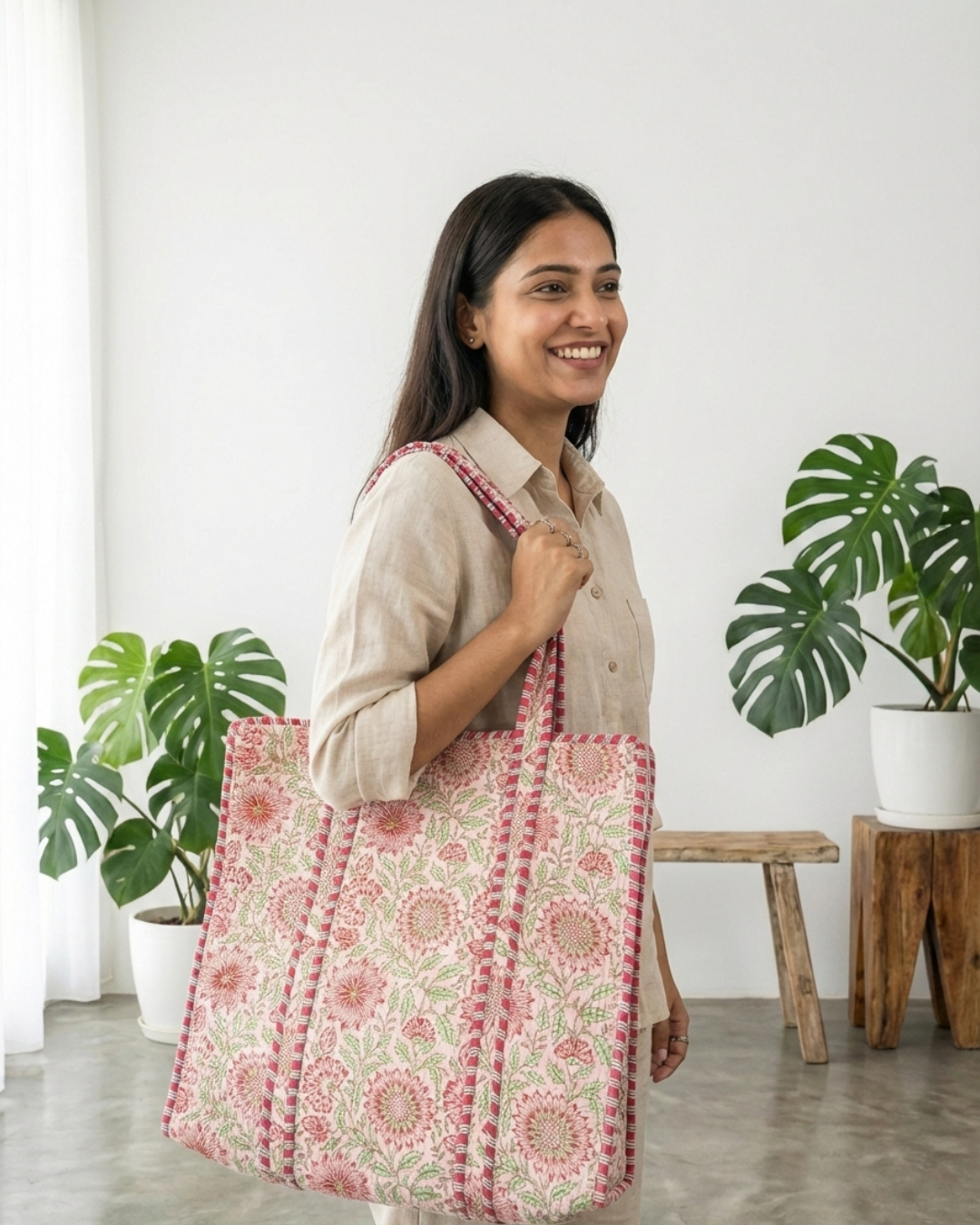 Finished with sturdy, comfortable handles, it’s perfect for workdays, casual outings, shopping runs, or short getaways. Crafted using traditional handblock printing, each tote carries a touch of artisanal beauty, making it as unique as your style.