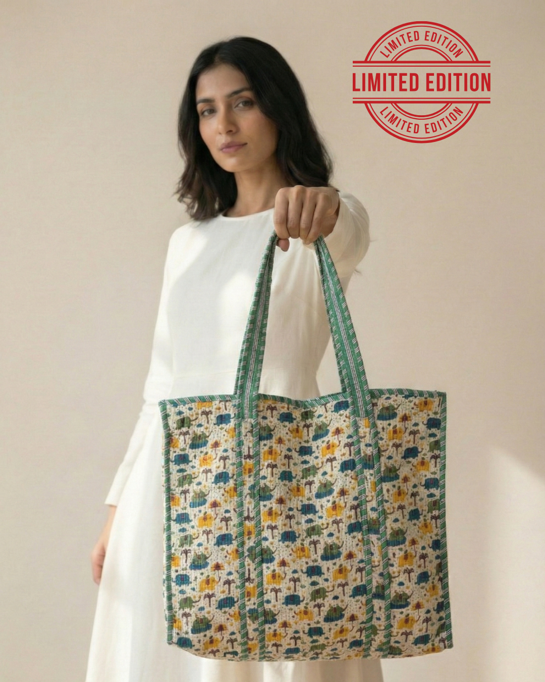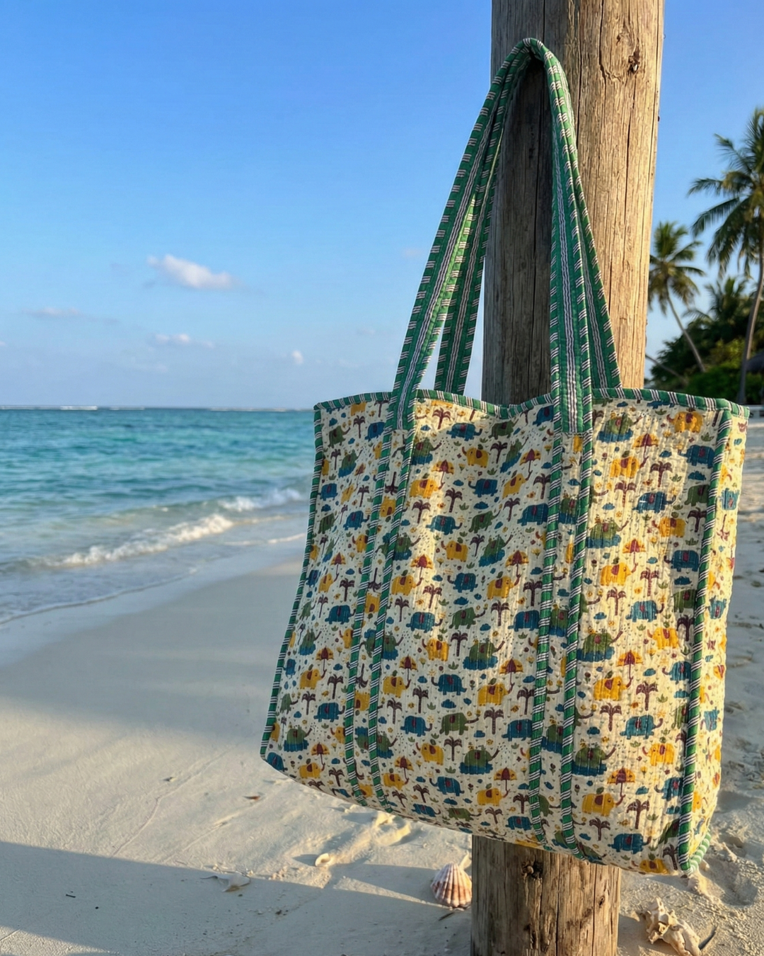 Finished with sturdy, comfortable handles, it’s perfect for workdays, casual outings, shopping runs, or short getaways. Crafted using traditional handblock printing, each tote carries a touch of artisanal beauty, making it as uniqu