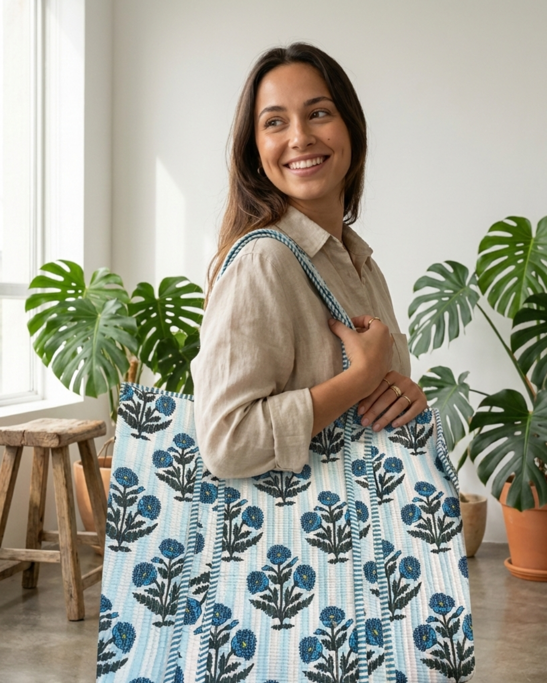 Finished with sturdy, comfortable handles, it’s perfect for workdays, casual outings, shopping runs, or short getaways. Crafted using traditional handblock printing, each tote carries a touch of artisanal beauty, making it as unique as your style.