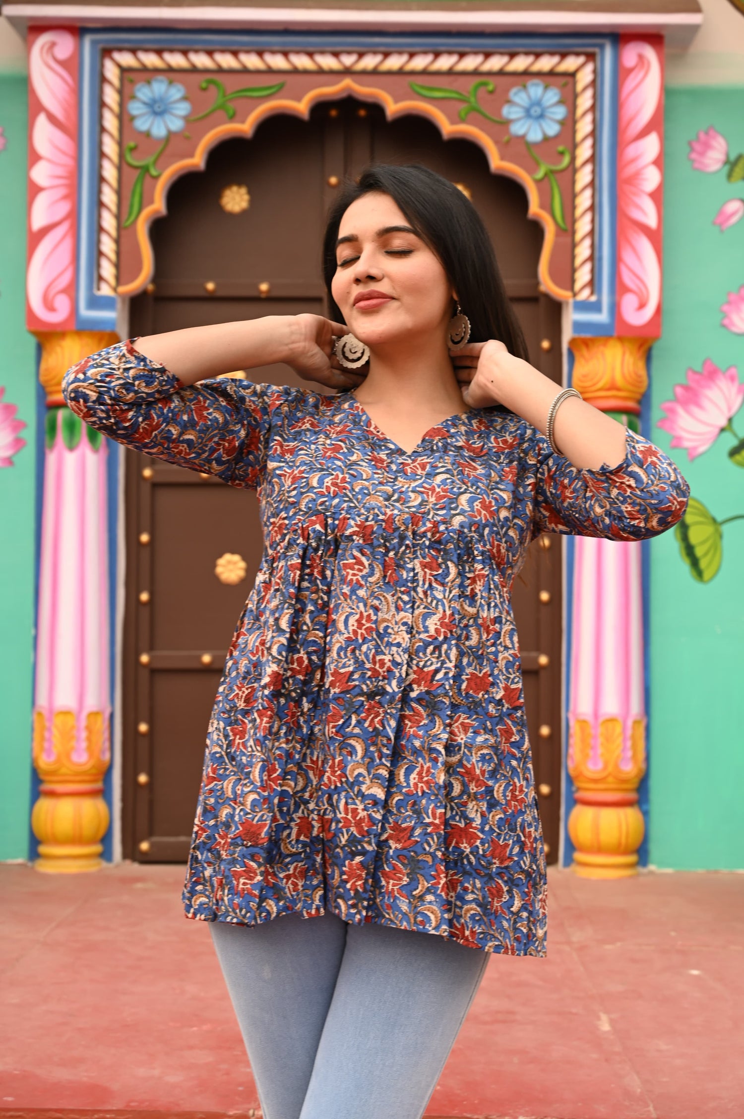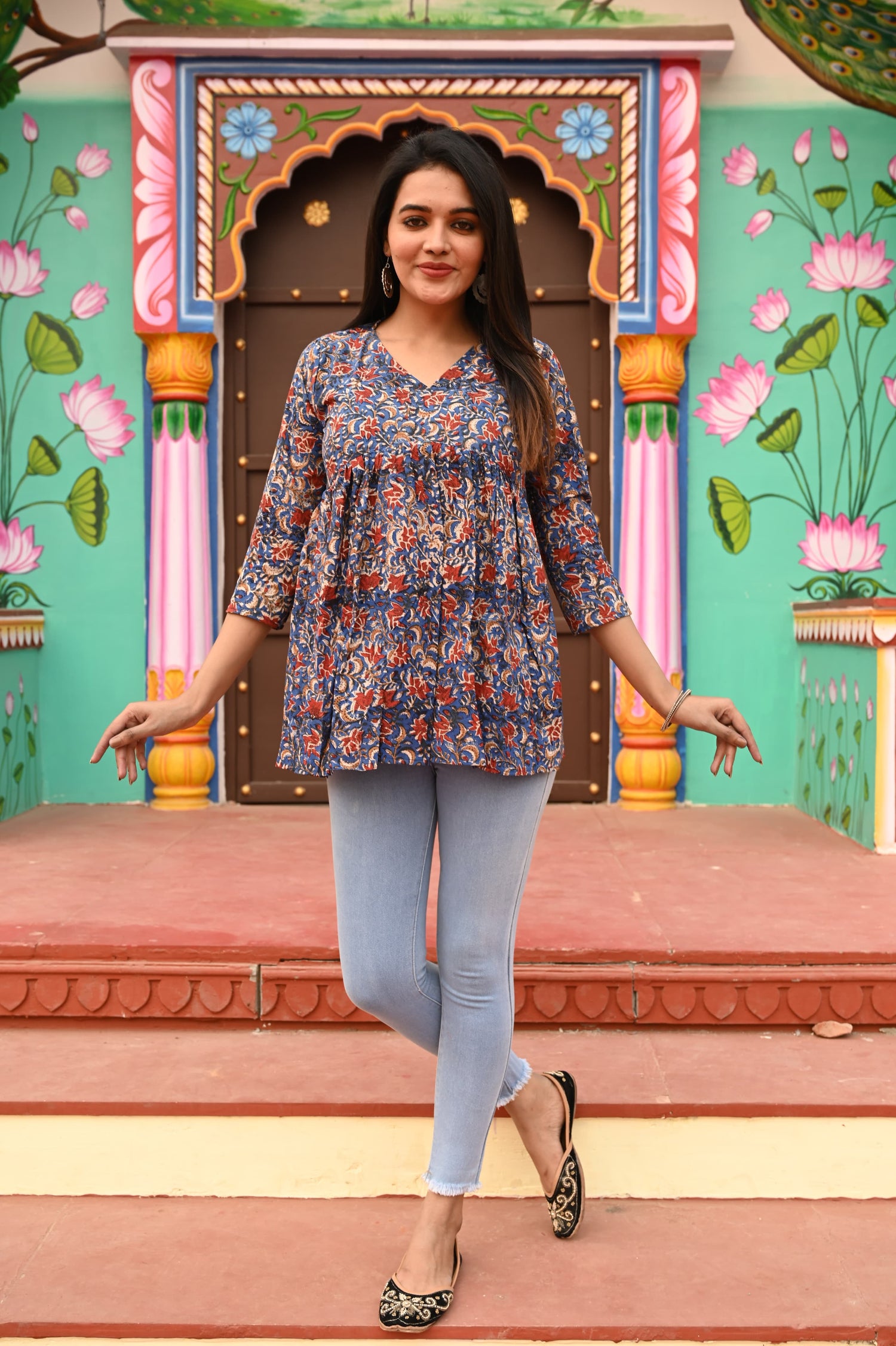 Tricolor Bloom Pure Cotton Short Kurti
