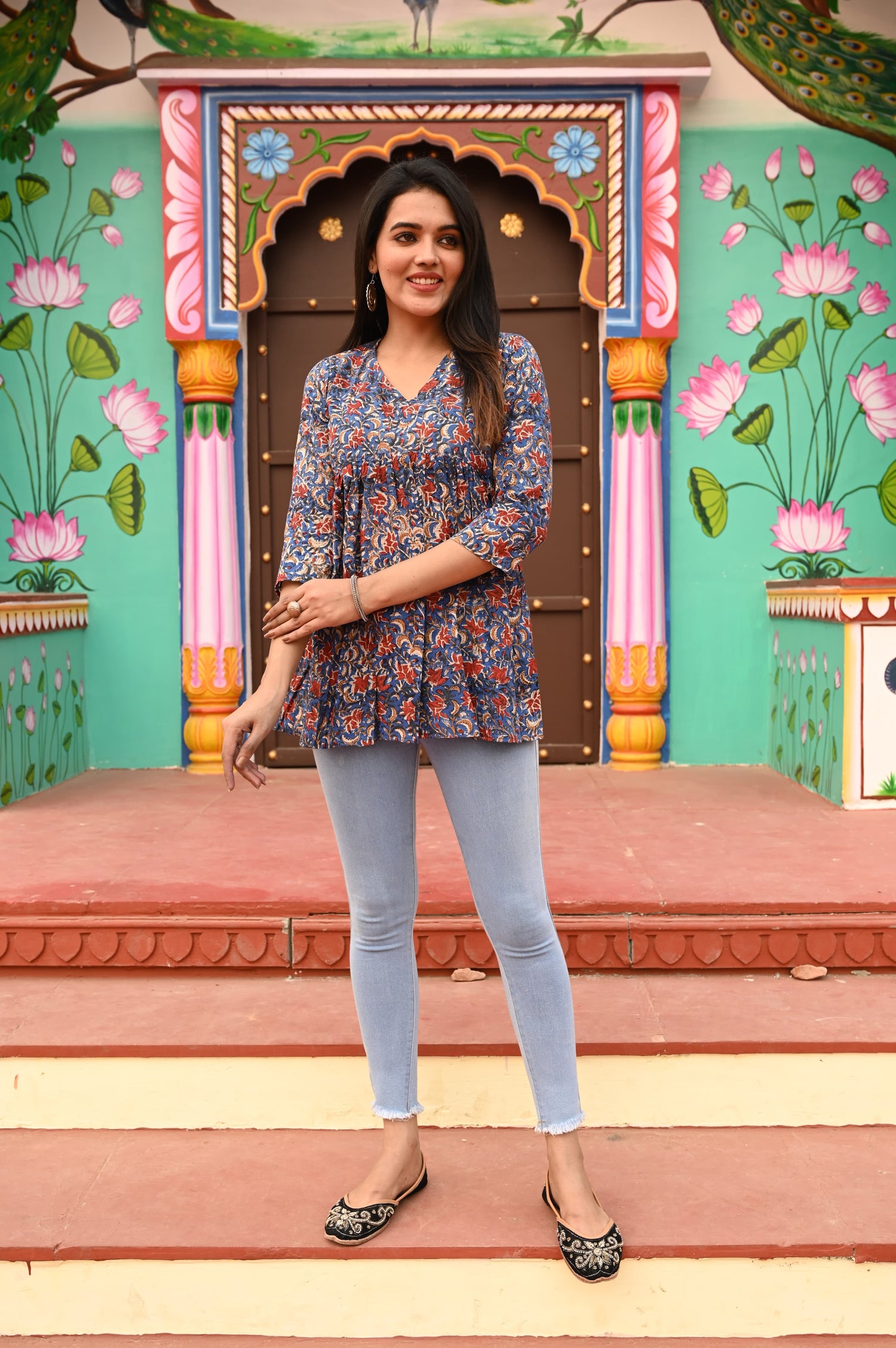 This short kurti is stylish, comfortable, and perfect for casual as well as semi-formal wear. The fabric feels soft on the skin, and the fit is flattering without being too tight. Its simple yet elegant design makes it easy to pair with jeans, leggings, or palazzos, giving a chic and versatile look. A great choice for everyday wear!